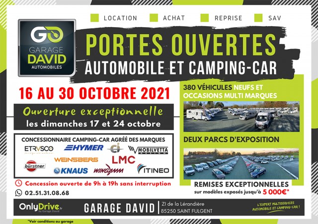 Portes Ouvertes Automobiles et Camping-car du 16 au 30 octobre 2021